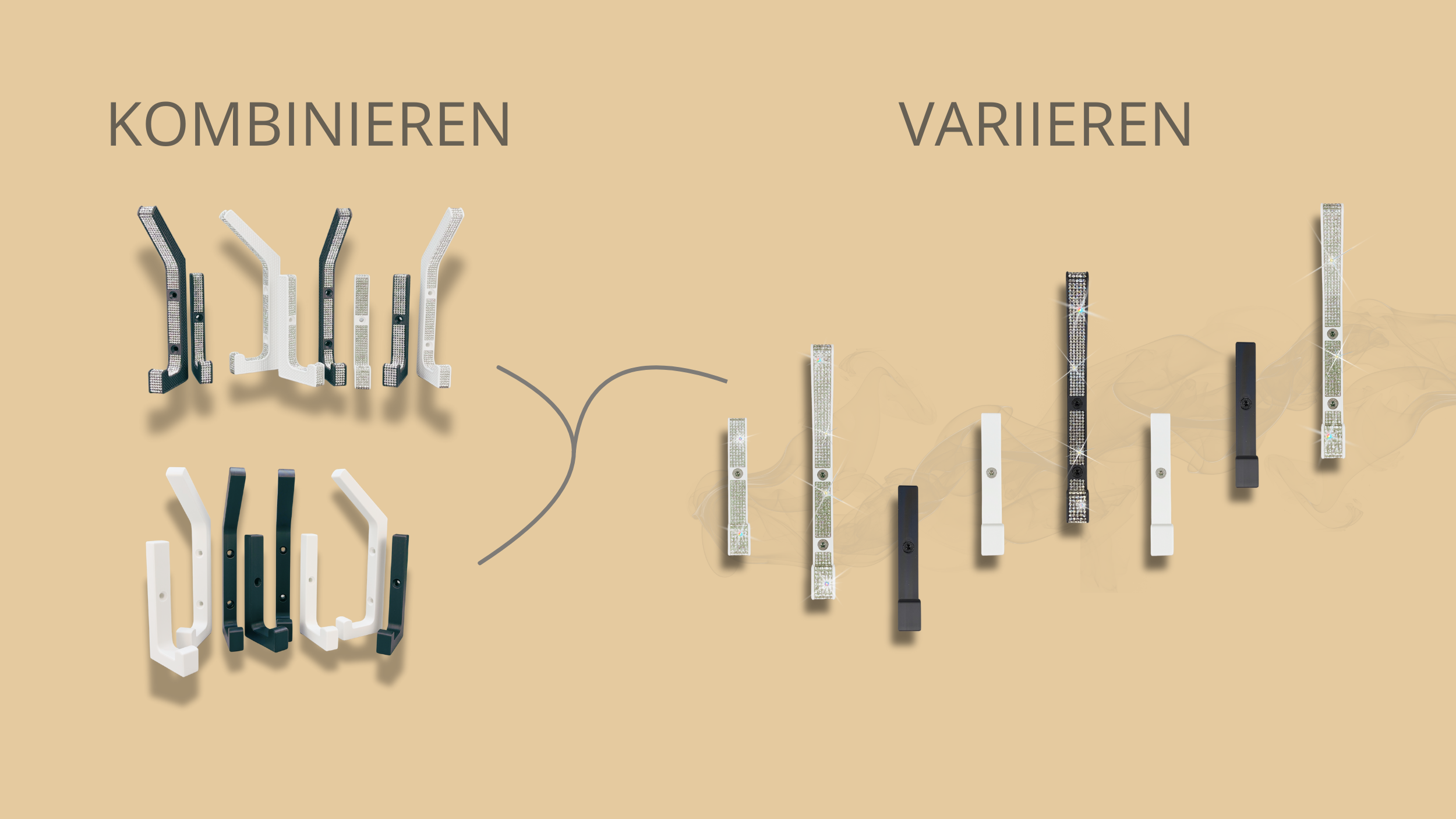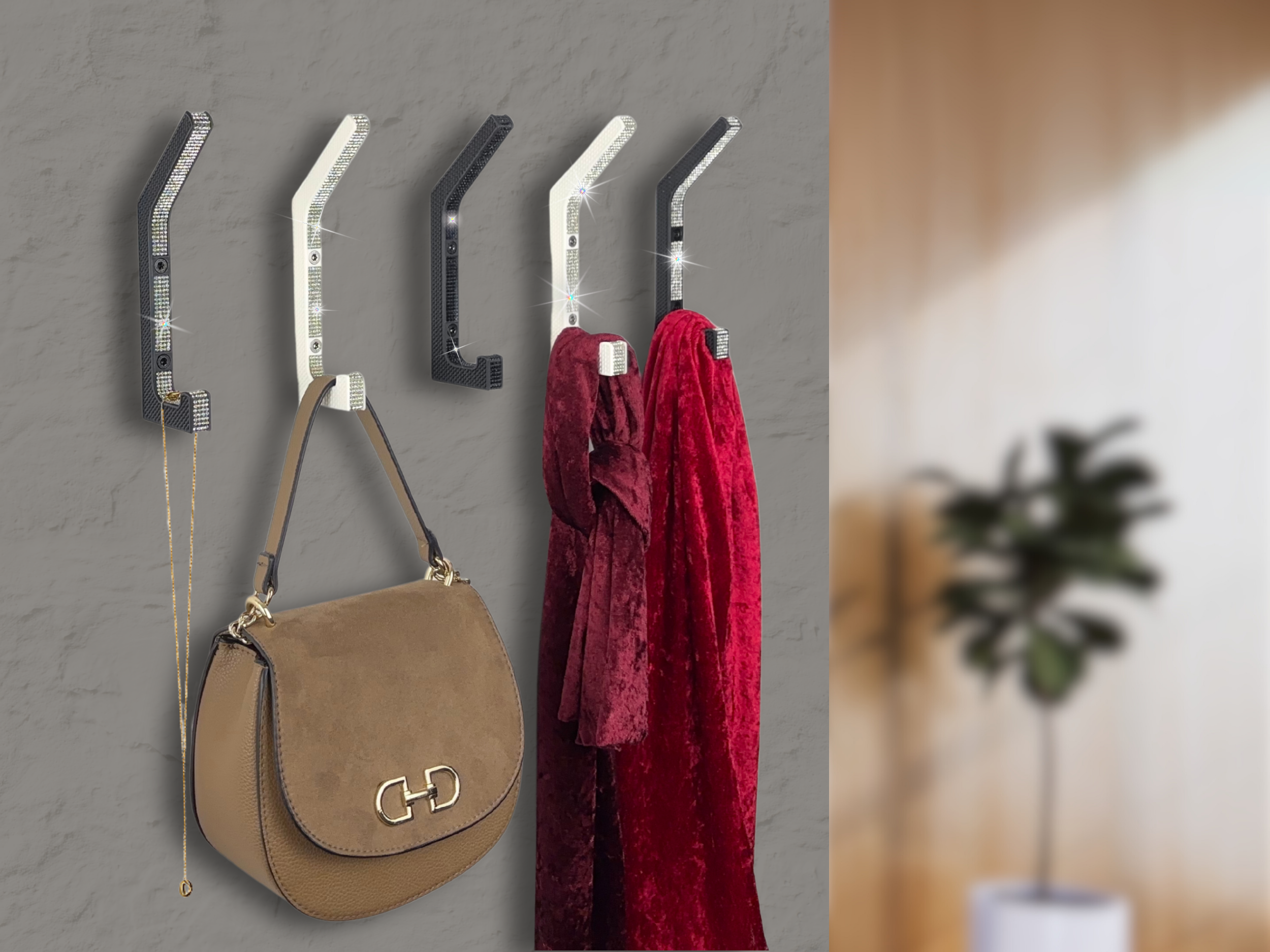 Ob minimalistisch, mehrfarbig oder mit funkelnden Strasssteinen – unsere Haken vereinen Funktion und Stil. Passend für Akustikpaneele oder glatte Wände, 3D-gedruckt mit präziser Qualität, in verschiedenen Farben, Größen und Oberflächen. Von Basic bis glämfän®: Für Räume mit Charakter.