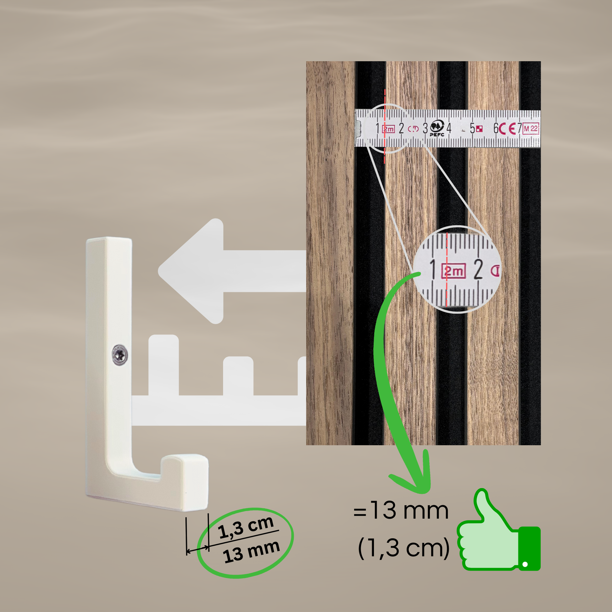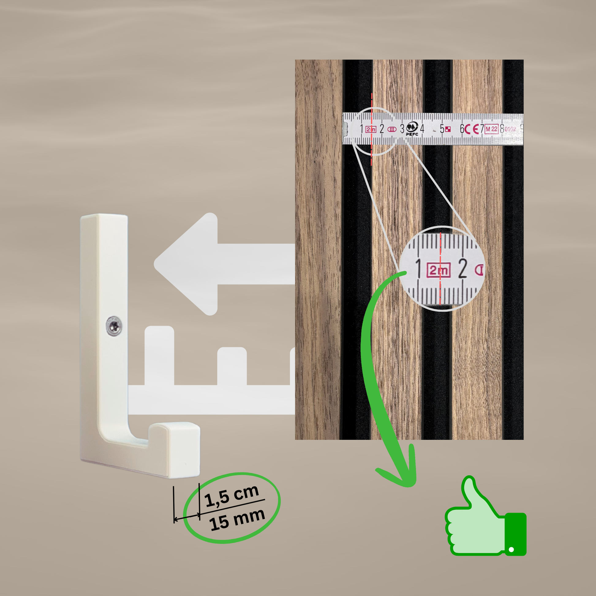 Ob im Flur, Schlafzimmer, Ankleidezimmer oder in Boutiquen: Die Haken bieten starke Tragkraft und lassen sich vielseitig einsetzen – für Jacken, Mäntel, Taschen oder Accessoires. Dank einfacher Montage sind sie sowohl für Wände als auch für 13 oder 15 mm Akustikpaneele geeignet. Die mitgelieferte Bohrhilfe sorgt zusätzlich für ein präzises und schnelles Ergebnis.