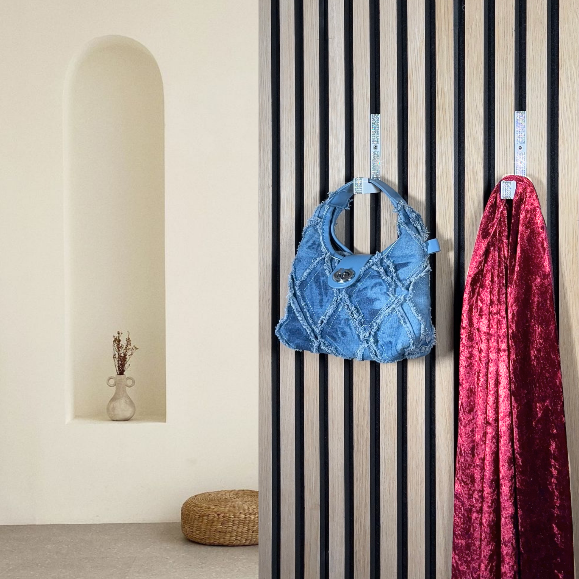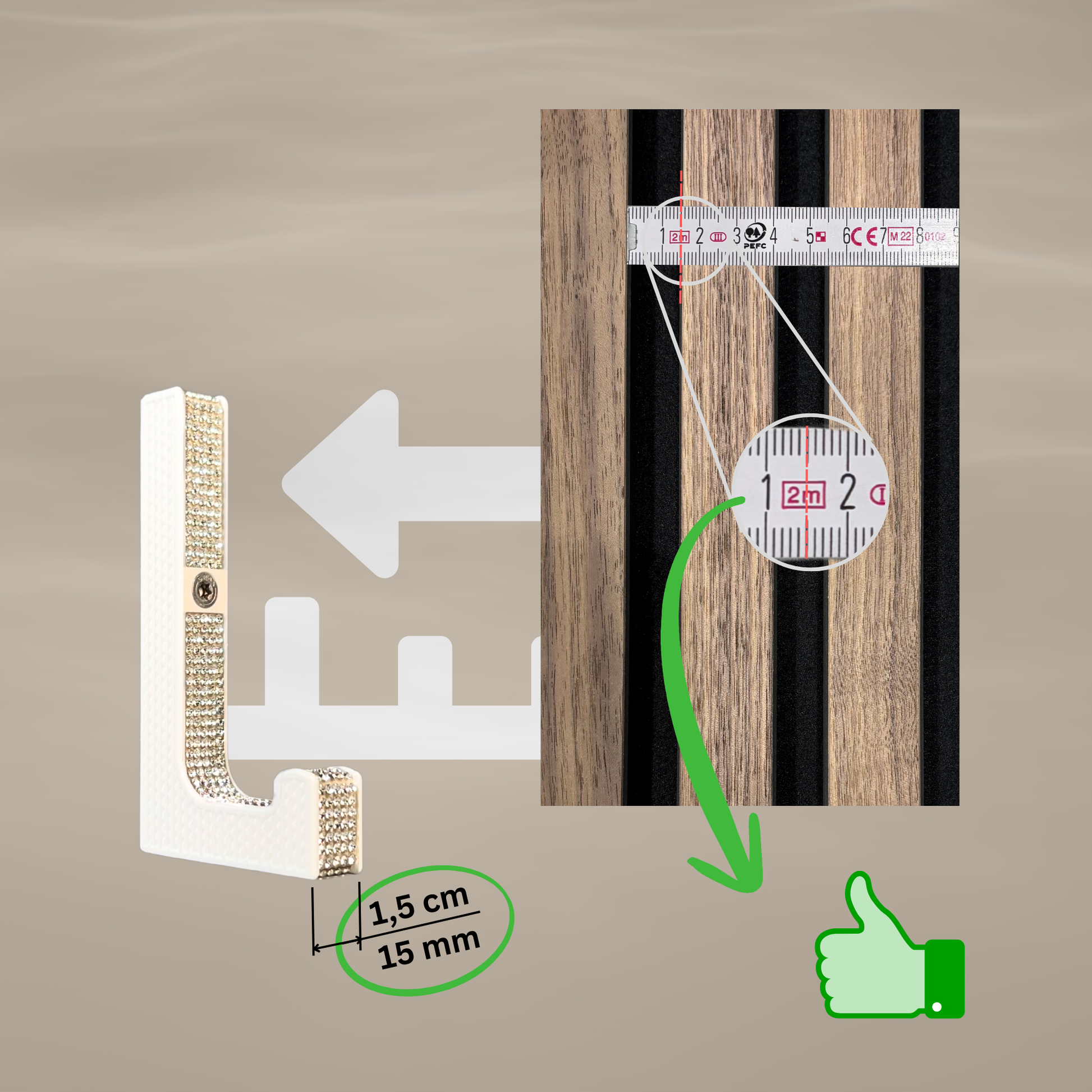 Ob Jacken, Mäntel oder Taschen – der Haken ist vielseitig einsetzbar und überzeugt mit starker Tragkraft und einfacher Montage: Passend für Wände und Akustikpaneele mit 13 mm oder 15mm Lamellenabstand, inklusive Bohrhilfe und Montagematerial. Das perfekte Accessoire für stilbewusste Räume – oder als edles Geschenk mit Wow-Effekt.