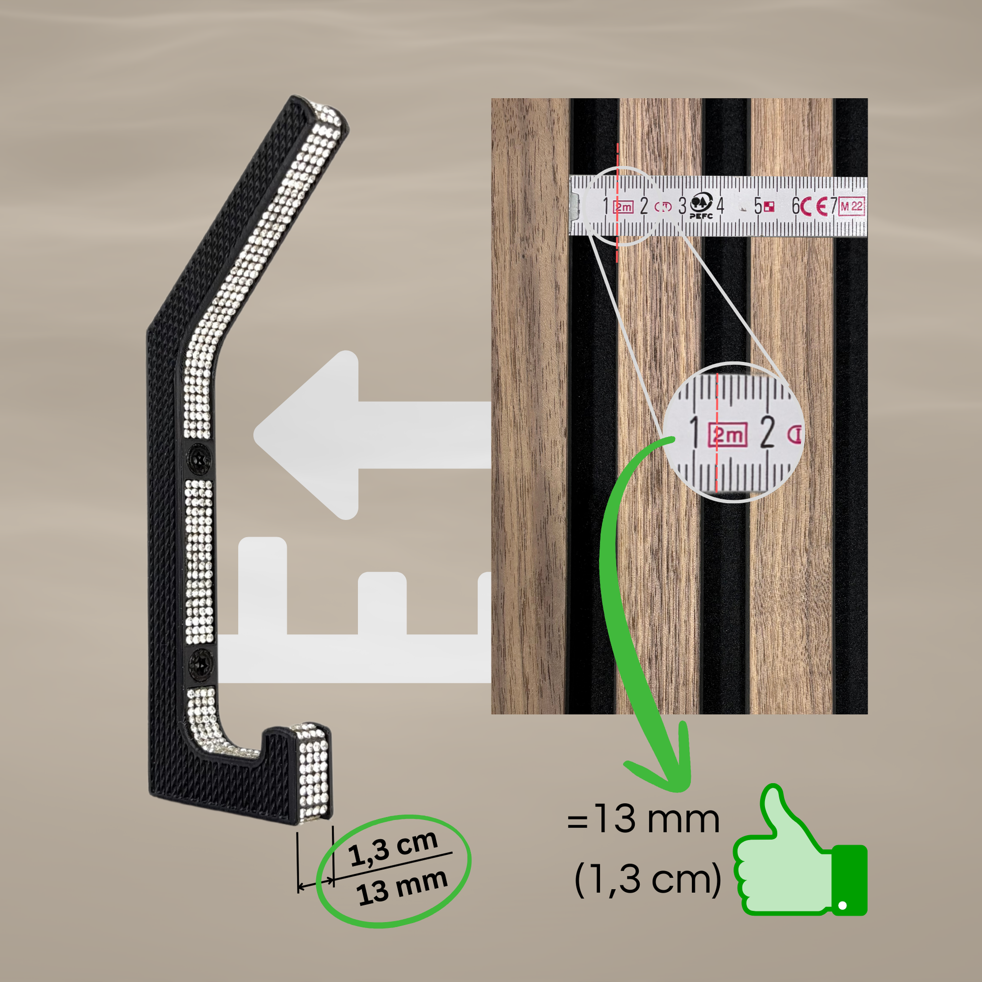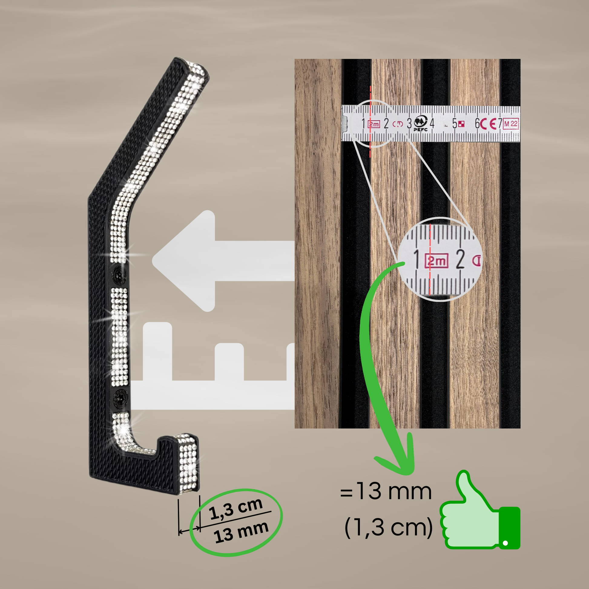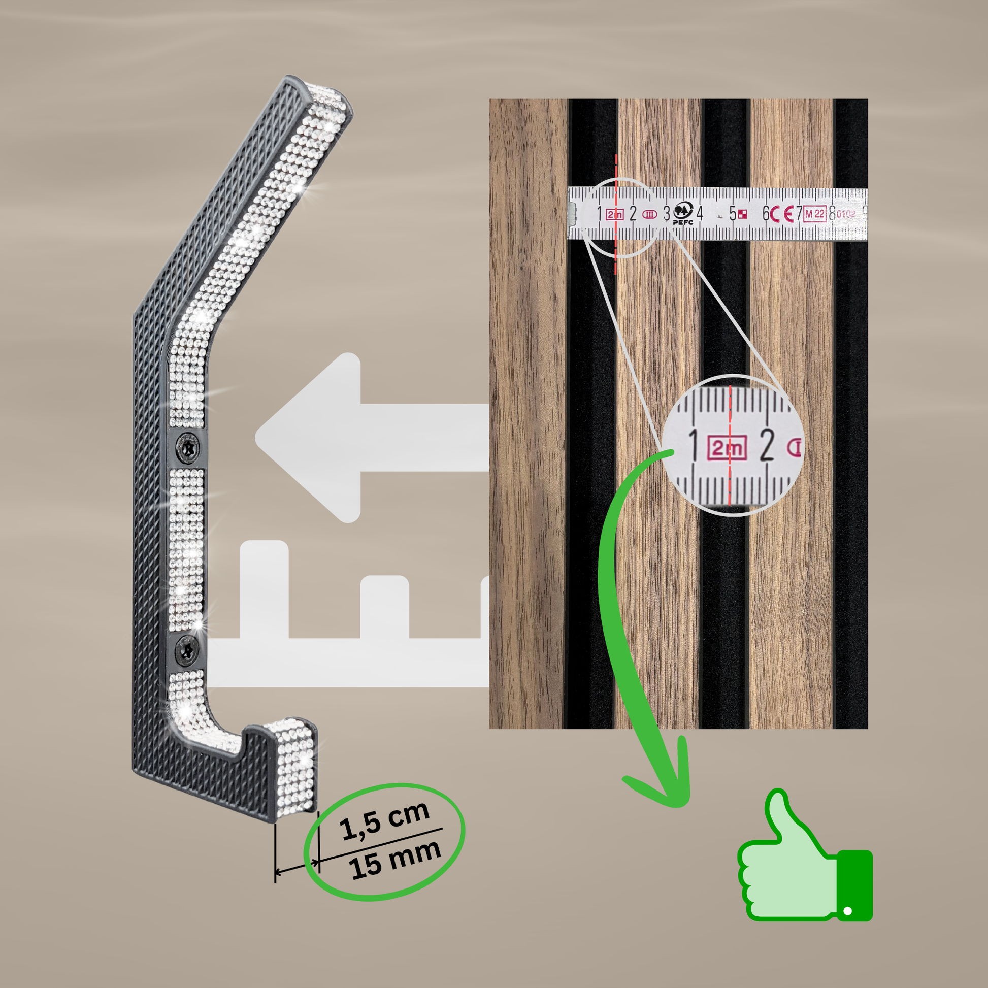 Ob Jacken, Mäntel oder Taschen – der Haken ist vielseitig einsetzbar und überzeugt mit starker Tragkraft und einfacher Montage: Passend für Wände und Akustikpaneele mit 13 mm oder 15mm Lamellenabstand, inklusive Bohrhilfe und Montagematerial. Das perfekte Accessoire für stilbewusste Räume – oder als edles Geschenk mit Wow-Effekt.