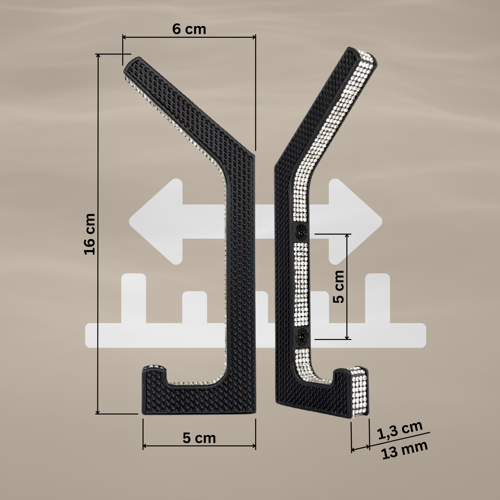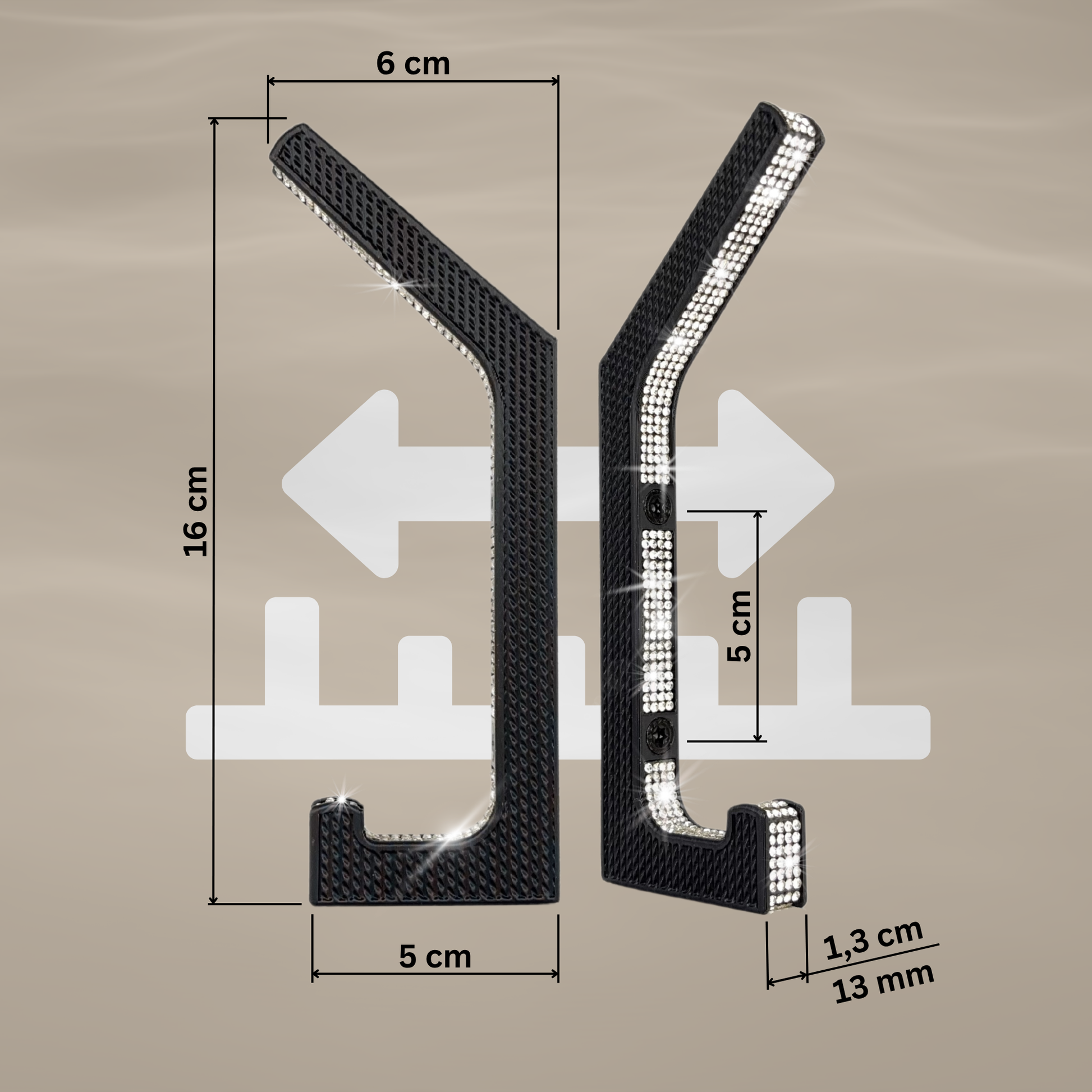 Die handgefertigten glämfän® Garderobenhaken verbinden stilvollen Glamour mit langlebiger Funktion. Jeder Haken wird regional in Deutschland produziert und besteht aus hochwertigem Bio-Kunststoff in edlem Schwarz. Veredelt mit funkelnden Strasssteinen, wird er zum stilvollen Blickfang in Flur, Schlafzimmer, Ankleidezimmer oder Boutique.